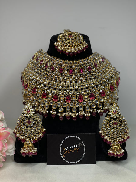 Treat yourself to this amazing Kundan necklace which comes with matching earings and maang Tikka. This piece is timeless, chic and on-trend as you are! This trendy Jewelry set is everything you need for Wedding, Engagement, Anniversary, Party or any special occasion. This perfect set will enhance your look even more wherever you go & give you a royal feel. Give these jewelry a spot in your collection, and you'll love every second you wear them. YouÕll never want to take them off!