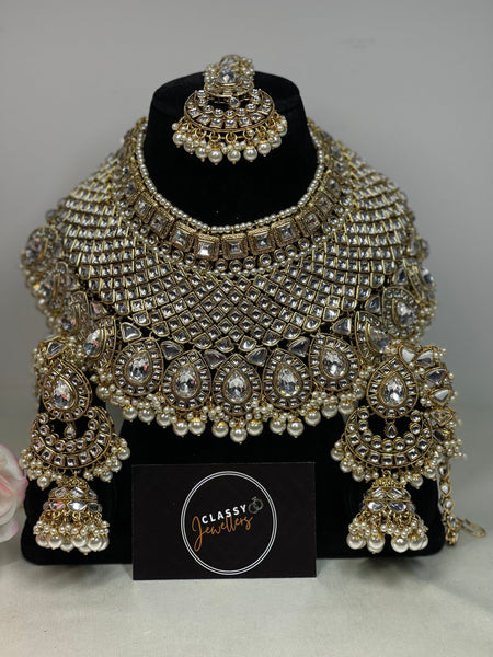 Treat yourself to this amazing Kundan necklace which comes with matching earings and maang Tikka. This piece is timeless, chic and on-trend as you are! This trendy Jewelry set is everything you need for Wedding, Engagement, Anniversary, Party or any special occasion. This perfect set will enhance your look even more wherever you go & give you a royal feel. Give these jewelry a spot in your collection, and you'll love every second you wear them. YouÕll never want to take them off! Comes in various colors to choose from.