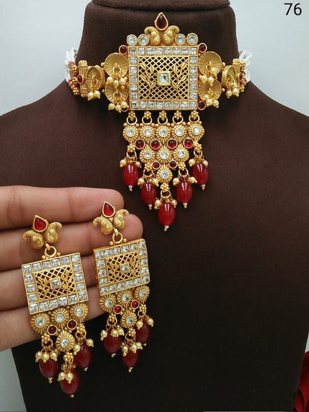 Stunning red choker set with matching danglers to pair with your indian wear. This can be worn with Lehngas, Suits or Sarees. Perfect for weddings and engagements
